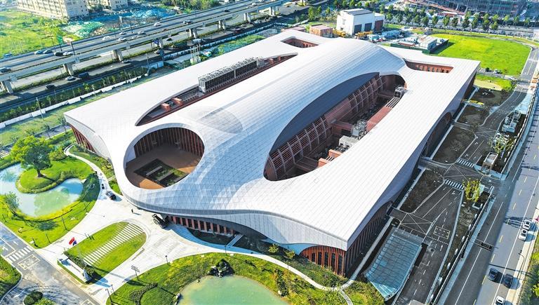 9月29日,位于浙江杭州的国家重大科技基础设施——浙大超重力离心模拟与实验装置的核心设备正式启用。据了解,这套由我国完全自主研发的超重力大科学装置,能以很小的尺寸、极短的时间再现真实世界的变迁,为推演验证千米尺度灾变、万年历时污染迁移等提供关键支撑。图为浙大超重力离心模拟与实验装置实验大楼。龙 巍摄(中经视觉)
