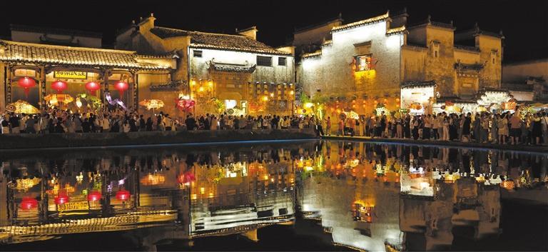 10月5日晚,安徽省黄山市黟县宏村举行“月满中秋 宏村灯会”游园活动,游客体验花灯巡游,在灯火月影中感受传统文化魅力,喜迎中秋佳节。许家栋摄(中经视觉)