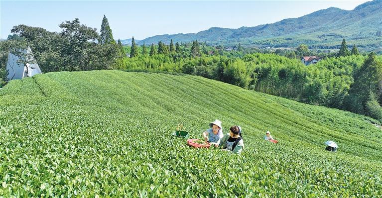 10月10日,浙江省湖州市德清县莫干山镇何村村茶园,游客在采摘秋茶。近年来,当地以生态茶园为纽带,打造茶园咖啡、板栗采摘、采茶体验等农文旅融合消费新场景,发展乡村旅游,助力乡村振兴。