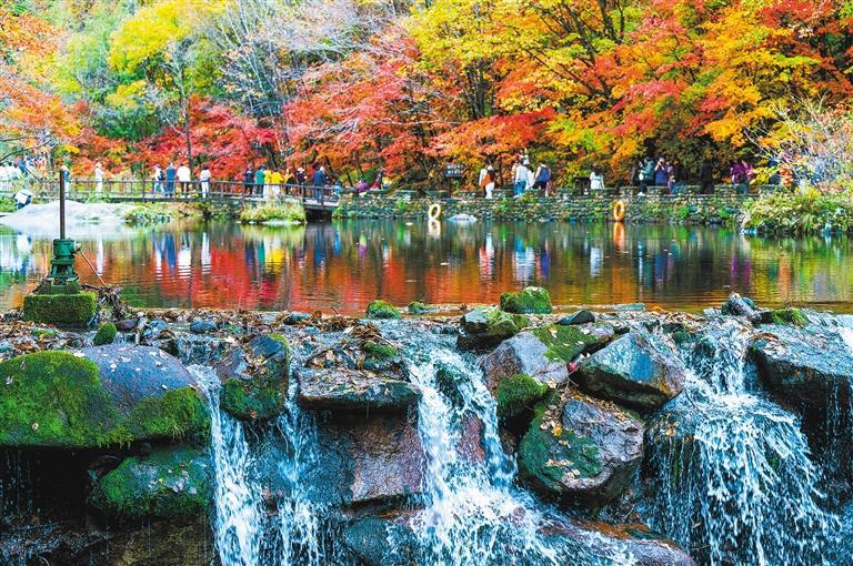10月11日,游客在辽宁省本溪市大石湖景区观赏红枫。 何华文摄 (中经视觉)