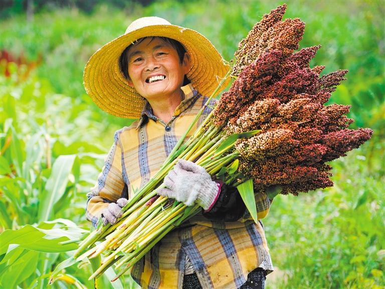 9月23日,安徽省黄山市黟县西递村,村民利用晴好天气收获高粱。 许家栋摄 (中经视觉)
