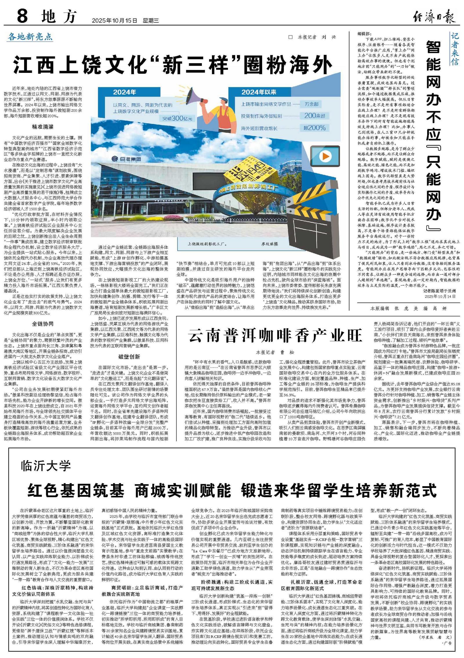 在推动文化出海的过程中,上饶没有“大水漫灌”,而是以“定制思维”谋划政策,围绕招商安商、产业集聚、人才引进、要素保障等方面,出台《关于推进上饶市数字文化产业高质量发展的实施意见》《上饶市促进网络微短剧产业高质量发展的若干措施》等,挂牌成立大数据人才服务中心,与江西师范大学合作共建全省首家数字产业学院,每年培养数字经济领域人才1500余名。