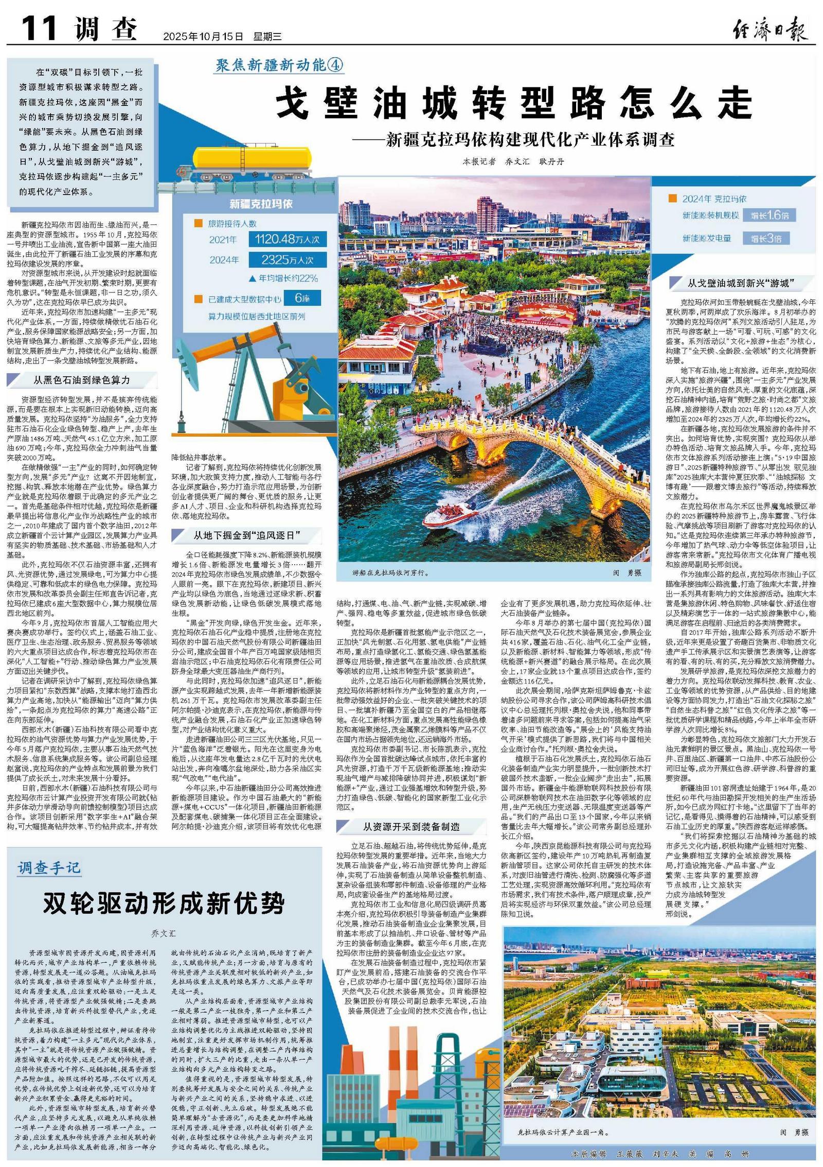 资源型城市因资源开发而建,因资源利用转化而兴,城市产业结构单一,严重依赖传统资源,转型发展是一道必答题。从油城克拉玛依的实践看,推动资源型城市产业转型升级,迈向高质量发展,应注重双轮驱动:一是立足传统资源,将资源型产业做强做精;二是要跳出传统资源,培育新兴科技型替代产业,竞逐产业新赛道。