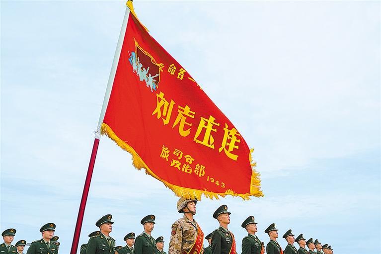 “我是‘刘老庄连’第6679名战士。我有勇气扛起这面连旗,我有勇气成为连队下一名英雄烈士……有我在,连旗不倒!”今年7月,新兵董洪运站在老连旗前庄严宣誓,成为连队最新的面孔。