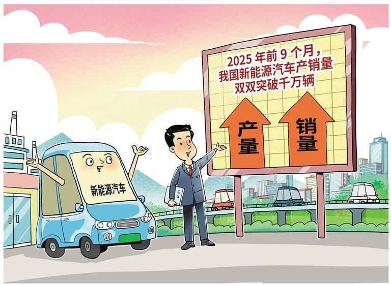 近日,中国汽车工业协会发布数据显示,今年前9个月,我国新能源汽车产销量双双突破千万辆,同比增幅均超过30%,彰显汽车产业蓬勃活力。近期,汽车以旧换新政策继续显效,地方车展火热进行,企业新品密集上市,汽车市场整体延续良好态势。面对这一良好局面,仍需多方协同、巩固拓展。相关部门应持续优化充换电基础设施网络,鼓励地方加大研发补贴,并进一步落实二手车绿色流通与动力电池回收体系建设;企业需加快关键技术攻关,聚焦电池能效、智能网联等领域,研发符合新规的高质量车型。可借助新能源汽车下乡与公共领域车辆电动化试点等契机拓展市场。此外,消费者也应关注政策与市场趋势,结合实际需求理性选购,共同促进新能源汽车市场健康发展。(时 锋)