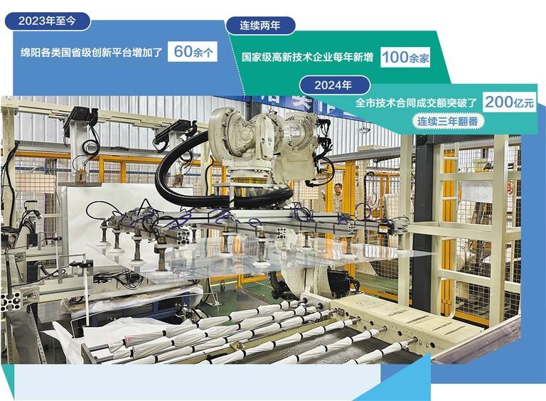 2023年至今,绵阳各类国省级创新平台增加了60余个;连续两年,国家级高新技术企业每年新增100余家;2024年,全市技术合同成交额突破了200亿元,连续三年翻番。当前,绵阳正加快组建200亿元的产业引导母基金,以期更好激发全社会创新创造活力。