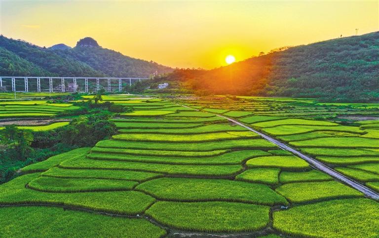 近日,湖南省新田县三井镇七贤山村梯田里的水稻陆续成熟,层层叠叠的梯田与民居、青山相映成景,构成一幅秋日丰收画卷。 刘贵雄摄(中经视觉)