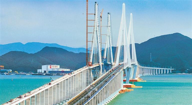 10月16日,浙江省宁波市域铁路象山港跨海大桥北侧边跨顺利合龙。至此,大桥南北边跨全部合龙。胡学军摄(中经视觉)