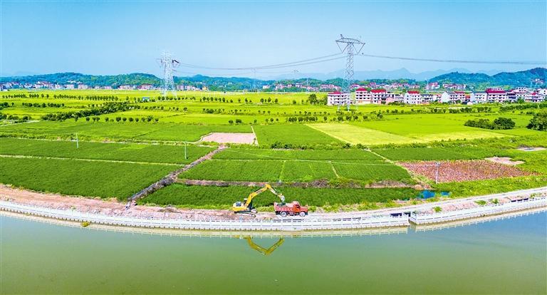 10月16日,湖南省娄底涟源市杨市镇金盆村孙水河段,施工车辆在清理渣土。近年来,涟源市持续推进生态修复,全力打造“河畅、水清、景美”的生态环境,谱写人与自然和谐共生的生动篇章。