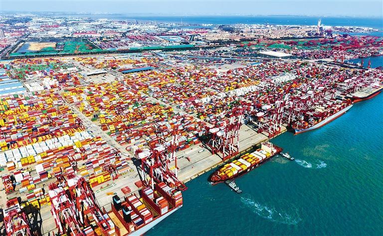 10月20日,山东港口青岛港外贸集装箱码头一派繁忙,装卸作业有序进行。俞方平摄(中经视觉)