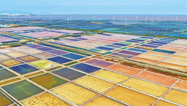 10月23日,江苏连云港市灌西盐场1.5万亩盐田,经连日晾晒,卤水浓度变大,出现多种色彩,宛如调色板,美不胜收。