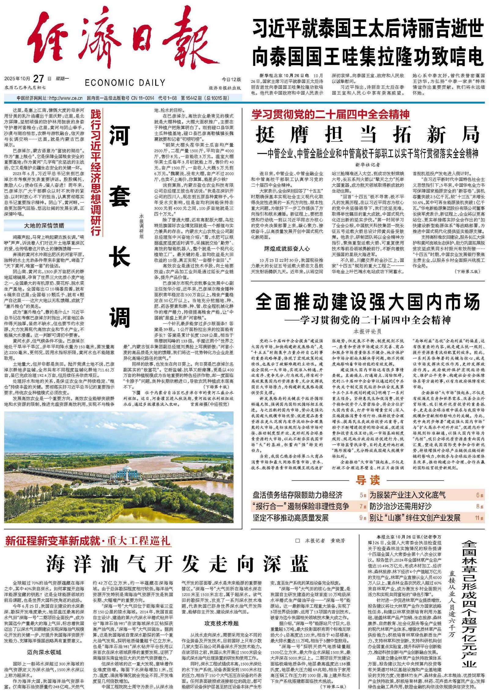 本报北京10月26日讯(记者李万祥)26日,全国人大常委会执法检查组关于检查森林法实施情况的报告提请十四届全国人大常委会第十八次会议审议。报告显示,2024年全国林草产业总产值达10.496万亿元,形成木材加工、经济林、森林旅游、林下经济4个产值超万亿元的支柱产业,林草产业直接从业人员6000万人以上,重点林业县农民收入超过60%来自林草产业,成为激发乡村全面振兴活力和实现共同富裕的“绿色引擎”。