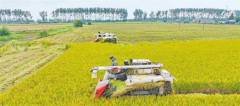 10月26日,农民驾驶收割机在江苏省兴化市周庄镇王官村收割晚稻。农业农村部最新农情调度显示,目前,全国秋粮主产区收获已超八成半。周社根摄(新华社发)