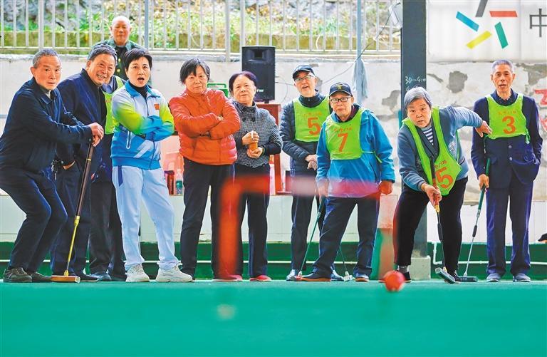 10月25日,湖南省邵阳市隆回县举办第四十二届老年人运动会,这是参赛选手在门球比赛中。 曾 勇摄(中经视觉)