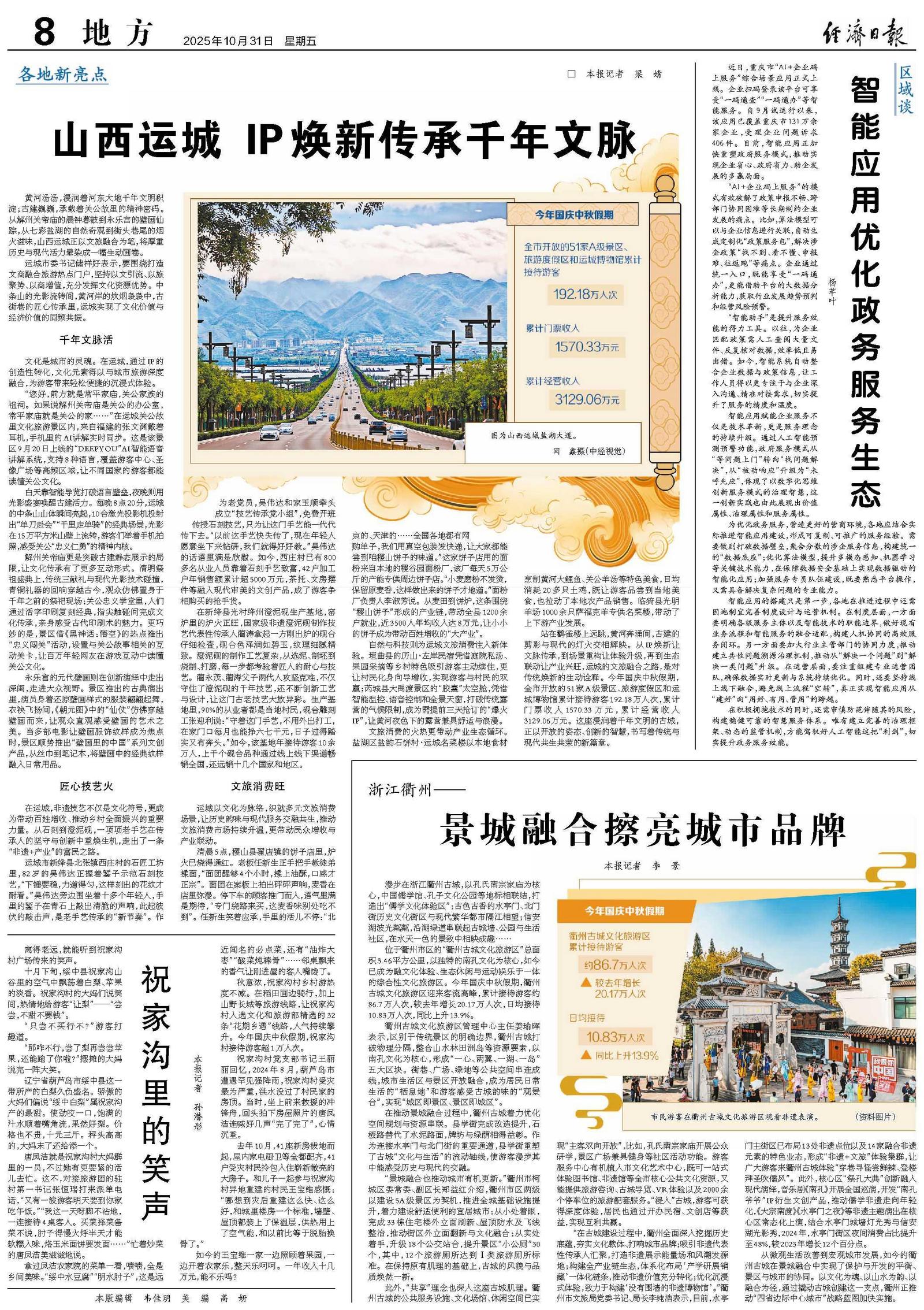 秋意浓,祝家沟村乡村游热度不减。在稻田画边骑行,加上山野长城等旅游线路,让祝家沟村入选文化和旅游部精选的32条“花期乡遇”线路,人气持续攀升。今年国庆中秋假期,祝家沟村接待游客超1万人次。