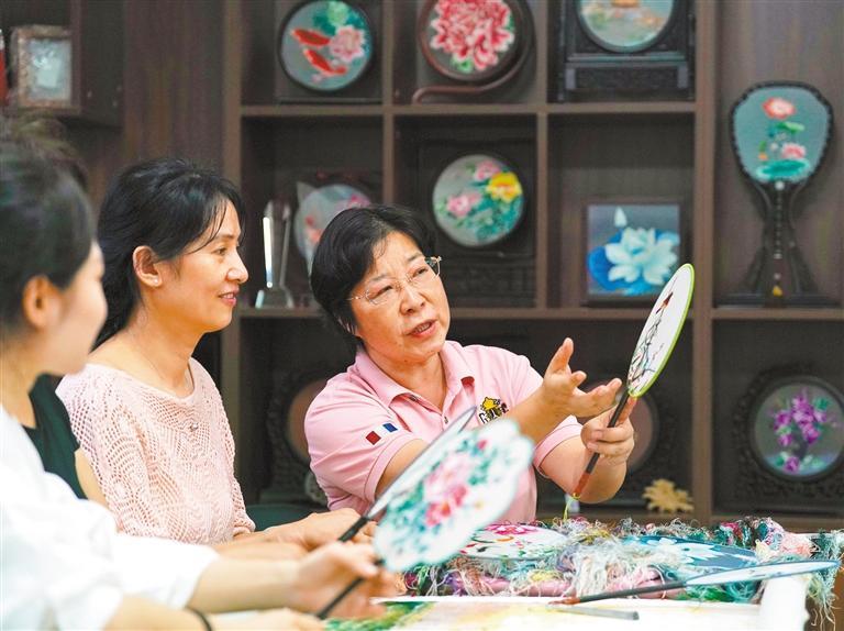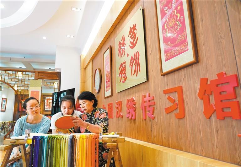 近年来,武汉市持续加大投入力度,通过成立汉绣博物馆、汉口非遗圈、武汉汉绣艺术研究院等,开办汉绣技艺传习馆、建设培训基地、增设非遗工坊、开展非遗进校园等措施,加强汉绣技艺的保护与传承。