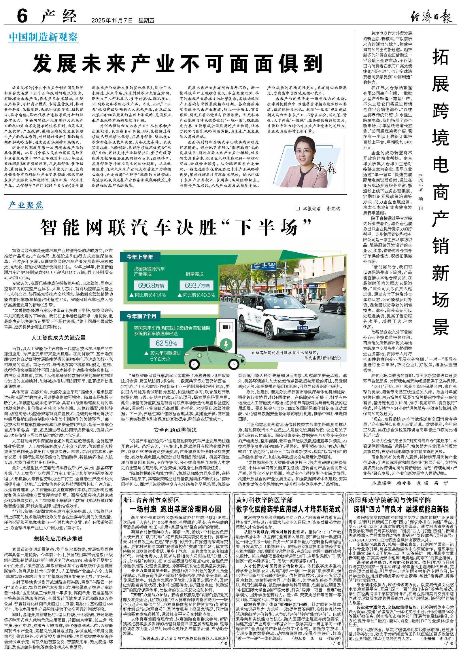智能网联汽车是全球汽车产业转型升级的战略方向,正在推动产品形态、产业格局、基础设施和出行方式发生深刻变革。经过多年发展,我国智能网联汽车产业发展取得积极成效,电动化、智能化转型步伐持续加快。今年上半年,我国新能源汽车产销分别完成696.8万辆和693.7万辆,同比分别增长41.4%和40.3%。