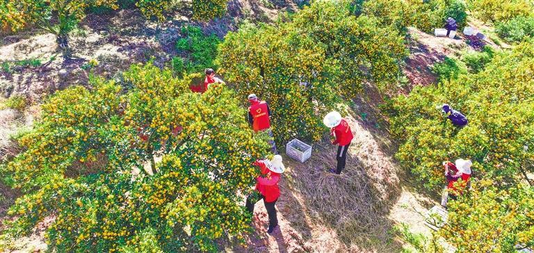11月7日,江西省抚州市南丰县桑田镇曾家丰村,党员志愿者和果农正忙着采摘蜜橘。近年来,当地坚持党建引领,重点培育柑橘产业,走出了一条党建赋能产业、产业助推乡村振兴的可持续发展之路。 谢 东摄(中经视觉)