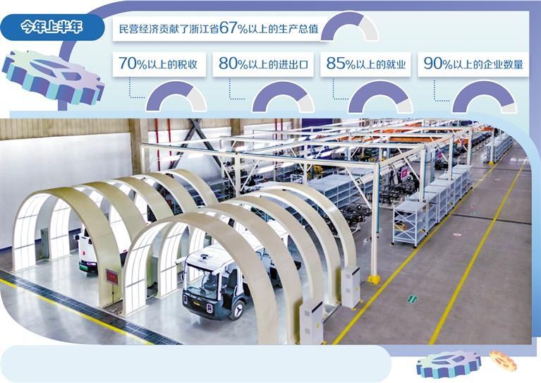 民营经济是浙江的最大特色、最大资源和最大优势,今年上半年,民营经济贡献了浙江省67%以上的生产总值、70%以上的税收、80%以上的进出口、85%以上的就业、90%以上的企业数量。