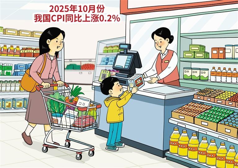 国家统计局11月9日发布数据显示,10月份,扩内需等政策措施持续显效,叠加国庆中秋假期带动,全国居民消费价格指数(CPI)同比上涨0.2%,扣除食品和能源价格的核心CPI同比涨幅连续第6个月扩大。值得注意的是,PPI环比由上月持平转为上涨0.1%,为年内首次上涨,这得益于“反内卷”等政策效果的持续释放,带动部分行业供需改善,对相关行业价格形成有力支撑。接下来,持续改善市场供求,一方面要进一步释放“反内卷”政策潜力,持续优化市场竞争秩序,让相关工业品价格合理回升。另一方面促消费政策也要加码,推动中低收入群体增收减负,提升消费能力、意愿和层级。(时 锋)