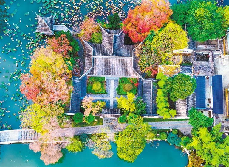 初冬,江苏省淮安市淮安区勺湖公园色彩斑斓,碧水蜿蜒,铺展出一幅人与自然和谐共生的生态画卷。纪星名摄(中经视觉)