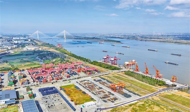 11月18日,上港集团江西九江港城西港区二期码头正式开港,多用途码头与滚装码头同步投入运营。码头的启用将进一步优化九江港功能结构,助力九江建设区域航运中心。魏东升摄(中经视觉)