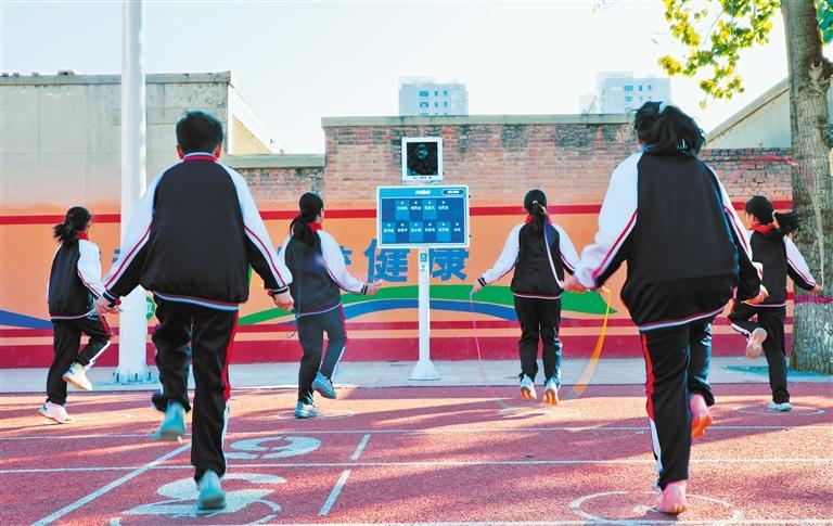 11月19日拍摄的河北省安国市药兴学校。操场配备的智能系统可精准记录学生个人成绩、实时排名、运动指标等数据。