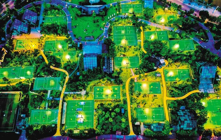 11月15日,重庆市万盛经开区,市民在智慧体育公园运动。市民可在线完成公园场馆预订,让运动更便捷。