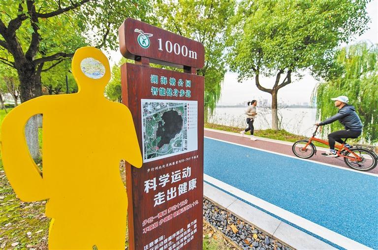 11月19日,浙江省金华市湖海塘公园,市民在智能健身步道上锻炼。近年来,该市在18个公园开展体育进公园提档改造,给市民带来全新的健身体验。