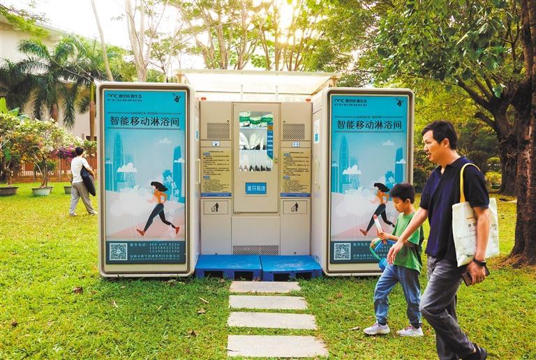 11月15日拍摄的广东省深圳市莲花山公园的智能移动淋浴间。该淋浴间提供寄存、淋浴、盥洗、更衣、淋浴产品售卖等服务。