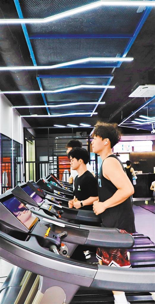 5月29日,市民在江西省新余市孔目江街道新苑社区“智慧健身房”跑步。该健身房能提供线上服务,运动后可查看运动数据与身体指标。