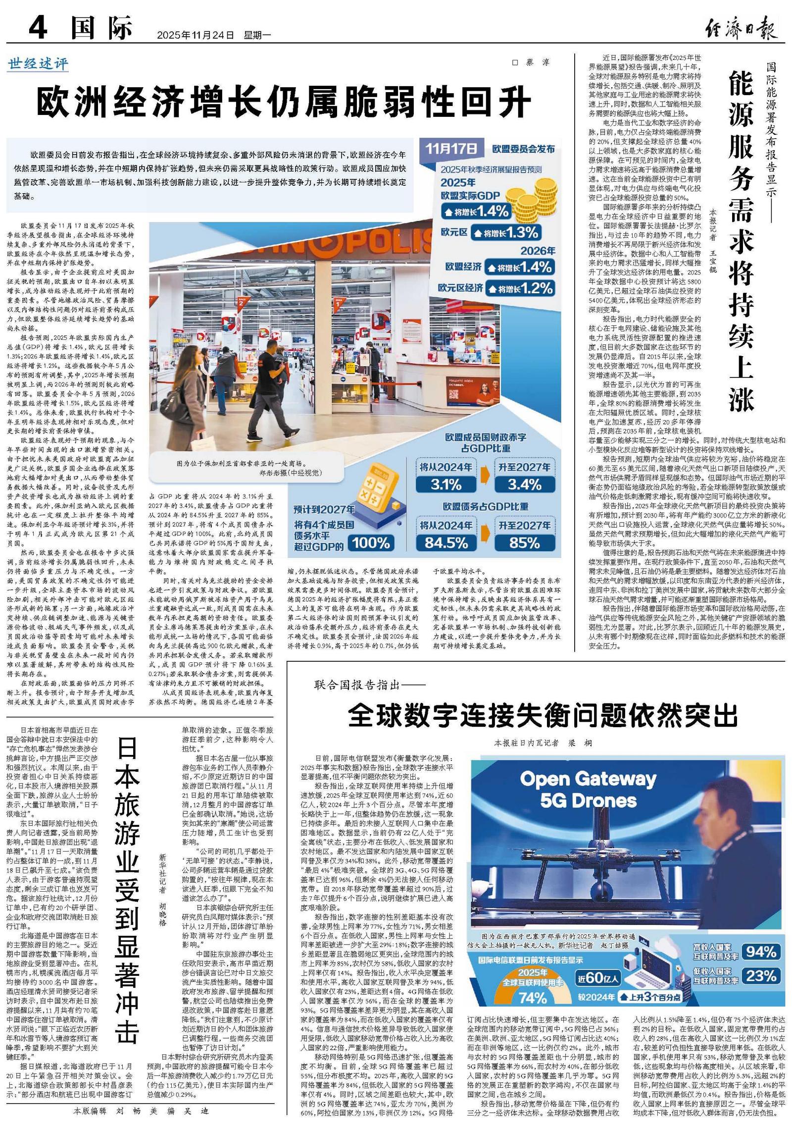 欧盟委员会11月17日发布2025年秋季经济展望报告指出,在全球经济环境持续复杂、多重外部风险仍未消退的背景下,欧盟经济在今年依然呈现温和增长态势,并在中短期内保持扩张趋势。