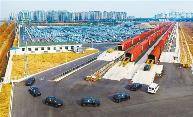 11月23日,安徽省合肥下塘工业园铁路专用线,汽车有序驶入铁路货运专列。今年1月至10月,国家铁路累计发送货物33.78亿吨,同比增长3%,创历史同期新高。