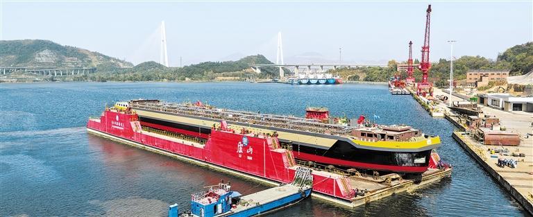 11月27日,江西省瑞昌市黄金乡下巢湖,江西省新江洲船舶重工有限责任公司出口至荷兰的135米双相不锈钢化学品船顺利出坞。魏东升摄(中经视觉)