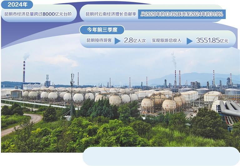 “十四五”以来,云南省昆明市扎实推进经济社会高质量发展,在经济运行、开放格局、生态建设、民生福祉等方面取得显著成效,经济总量连续跨过7000亿元、8000亿元台阶,昆明对云南经济增长贡献率从2020年的13.3%跃升至2024年的31.9%,发挥了省会城市“火车头”作用,“六个春城”稳步奋进。