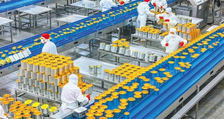 12月5日,湖北省宜昌市秭归县外贸加工企业内工人正在加紧生产。新鲜的柑橘经过深加工变成罐头、橙皮丝、橙醋等多种产品出口至欧美、东南亚等140多个国家和地区,实现果农和企业双增收。