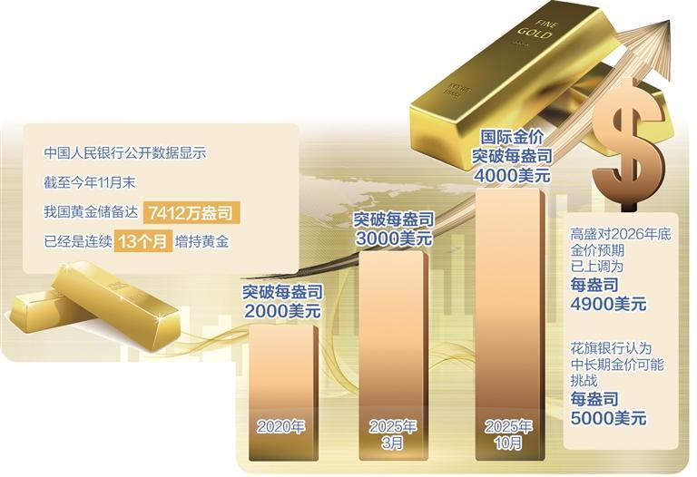 一些国际机构日前作出预测称,金价未来仍有较大上涨空间。高盛对2026年底的金价预期已上调为每盎司4900美元,花旗银行甚至认为中长期的金价可能挑战5000美元。不过,在看好金价前景的同时,其走势存在较大不确定性,其中变数不小。