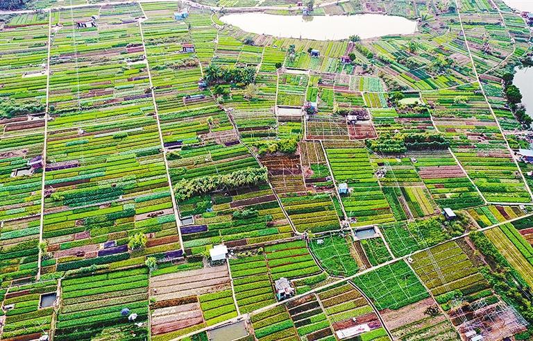 近日,菜农在广西梧州市长洲区长洲镇蔬菜基地种植、护理时令蔬菜。为保证冬日市场蔬菜供应,长洲区大力发展秋冬蔬菜种植和鲜鱼养殖,丰富城市菜篮子。黎杰源摄(中经视觉)