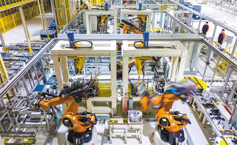 12月4日,位于浙江省湖州市长兴县的吉利长兴自动变速器有限公司,机器臂高速“挥舞”,高效加工产品。