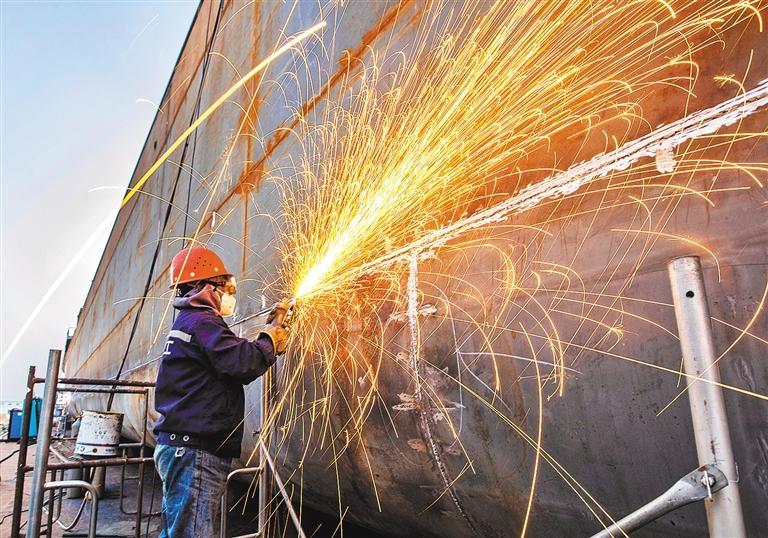 12月1日,江西省九江市都昌造船总厂,工人在赶制船舶订单。