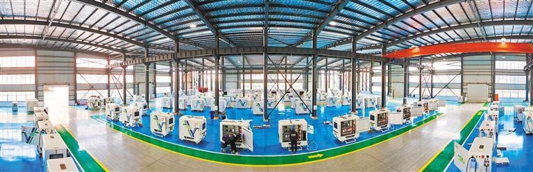 12月10日,江苏海宏智能科技有限公司生产车间,工人在组装移动储能智能充电机器人。
