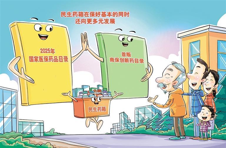 2025年国家医保药品目录及首版商保创新药目录日前发布。首次发布医保商保“双目录”,标志着多层次医疗保障体系建设迈出关键一步,民生药箱在保好基本的同时,还向更多元发展。如何平衡普惠公平与多元选择、兼顾用药可及性与产业创新动力,是医保领域的一道难题。“双目录”双轨协同,既坚守了基本医保“保基本”的原则,避免高价药对基金池造成冲击,也为高值创新药开辟新通道,保护企业研发创新药的积极性。未来,如何打破基本医保与商业保险的数据壁垒,建立“医保+商保”一站式结算等,还需相关部门进行更多探索,以更好发挥医保托底、商保扩容的作用,并在实践中不断优化调整,让14亿多人的生命健康得到更好保障。