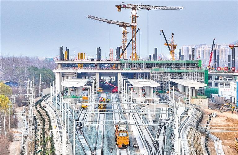 12月10日,安徽省淮北市西站轨道进入精调阶段,相关建设有序推进。淮北西站是淮宿蚌城际铁路重要枢纽站,该铁路建成后将成为皖北地区连接合肥都市圈及长三角地区的便捷通道。张红心摄(中经视觉)