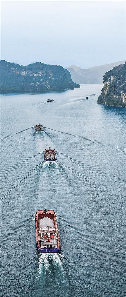 12月16日,贵州省瓮安港云中港区正式开港。云中港区设计年吞吐量120万吨,是贵州省首个专业化、智能化、现代化港口。这是货船从云中港区启运出发。