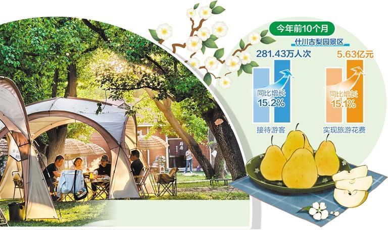 产业链的融合,新业态的丰富,让百年古梨园承载力和吸引力也进一步提升。今年前10个月,什川古梨园景区共接待游客281.43万人次,同比增长15.2%,实现旅游花费5.63亿元,同比增长15.1%。