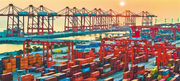 连日来,江苏省苏州港各港区生产繁忙,奋力完成全年生产目标任务。截至目前,苏州港今年已经完成集装箱吞吐量1000万标箱。图为太仓港区集装箱码头作业繁忙有序。