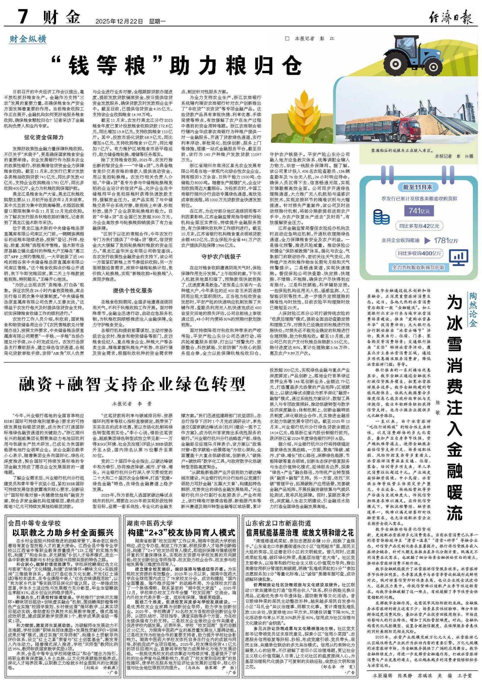 发挥好政策性金融力量保障秋粮收购,不仅关乎“米袋子”,更是确保国家粮食安全的重要举措。农业发展银行作为服务农业的政策性银行,积极筹措信贷资金全力保障粮食收购。截至11月末,农发行已累计发放各类粮油收购贷款741亿元,同比多发放42亿元,支持企业收购粮油1781亿斤,同比多收购400亿斤,全力为秋粮收购保驾护航。