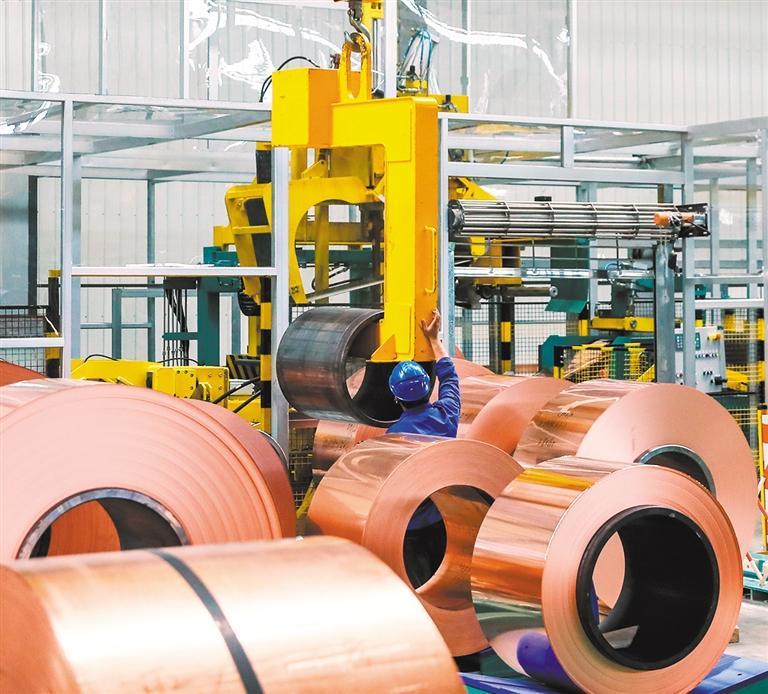 5月30日,位于运城经济技术开发区的山西北铜新材料科技有限公司,工人在生产订单产品。该公司生产的“手撕铜”箔,厚度仅6微米,填补了国内该领域技术空白。金玉敏摄(中经视觉)