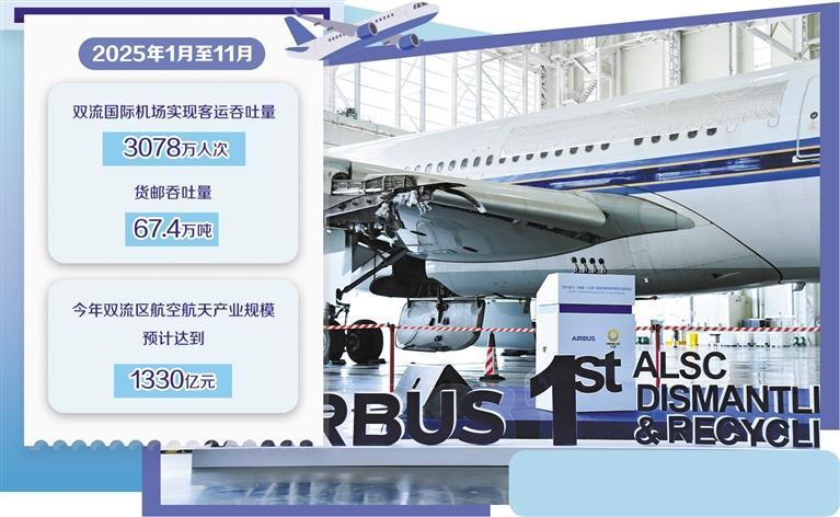 2025年1月至11月,双流国际机场实现客运吞吐量3078万人次、货邮吞吐量67.4万吨,今年双流区航空航天产业规模预计达到1330亿元……亮眼数据的背后,是双流区做强门户枢纽核心功能、构建门户枢纽新示范的决心和努力。