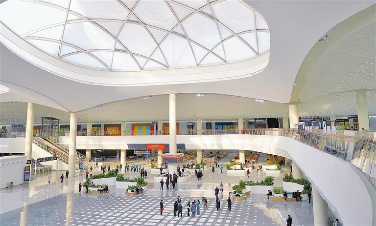 12月30日,北京通州站正式开通投运。该站对于推动京津冀协同发展、加快构建“轨道上的京津冀”具有重要意义。目前,北京已形成“八座全国铁路客运站、两座国际机场”交通枢纽格局,环京1小时通勤圈初具规模。本报记者 赵 晶摄